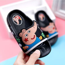 儿童拖鞋 蜘蛛侠男童女童拖鞋夏季亲子居家室内浴室洗澡凉拖王者荣耀宝宝软底外穿一字拖 佩佩黑色 36/37鞋子内长约22厘米(8-9周岁)