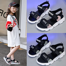 阿米艾女童凉鞋2021年夏季新款学生时尚韩版运动鞋子软底防滑小女孩潮品中大童儿童平底舒适透气沙滩鞋 粉色 38码/内长约23.5CM