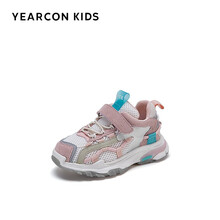 男童网鞋意尔康童鞋2021春夏新款女童网纱拼接运动鞋中大童老爹鞋 米/粉 26