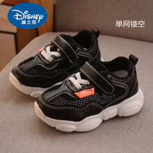 【捡漏特价】迪士尼DISNEY儿童小白鞋男童鞋子女童网鞋透气网面运动鞋2021夏季单网跑步鞋潮 黑色 内长13cm