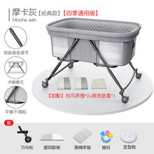 优束婴儿床可移动多功能安抚床折叠便携式宝宝床新生儿童小床摇篮床 四季版-经典款摩卡灰(5)调节款