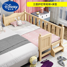 迪士尼(Disney)儿童拼接床大床加宽床婴儿床带围栏实木女孩公主床小床拼接定制床 三面尾梯+床垫 长150宽70高40(高可定制)