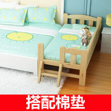 儿童拼接床大床加宽床婴儿床带围栏实木无油漆单人床床边床加宽床 三面围栏+尾梯+棉垫 长150*宽80*高40
