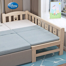 迪士尼(DISNEY)儿童床实木加宽床拼接大床边床带护栏男孩床单人婴儿加床定制 两面护栏款加床垫 200*100*40