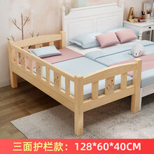 迪士尼实木婴儿床儿新生多功能bb宝宝小床拼接大床加宽床边儿童床带护栏 128*60*40三面护栏【下单送椰棕床垫】