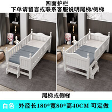 实木儿童拼接床加宽床大床男孩女孩公主床带护栏榉木婴儿床边小床 180*80*40四面尾梯/侧梯〖白色〗 【加强款 其他 不带