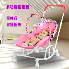 婴儿摇椅安抚椅哄娃神器新生儿童摇篮躺椅哄娃睡宝宝带娃摇摇椅床 粉色推把万向轮