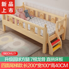 迪士尼婴儿床实木儿童床带护栏婴儿小床男孩女孩公主床单人床边床加宽拼接大床 稳固型200*100*40四尾 其他 不带