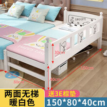 迪士尼实木儿童床带护栏婴儿小床男孩女孩公主床单人床边床加宽拼接大床儿童拼接床 暖白色 150*80两面无梯
