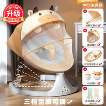 婴儿摇摇椅哄娃神器安抚椅可躺可坐全自动电动带娃哄睡儿童摇篮床 生肖牛【角度调节+坐垫可拆款】5件套