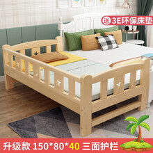 旗下官网同款 全实木儿童床带护栏婴儿床边床男孩女孩单人床小床拼接大床加宽床 三面护栏150*80*40送床垫 其他 不带