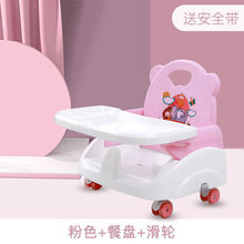 宝宝餐椅多功能家用可折叠儿童吃饭座椅便携式婴儿餐桌椅坐凳防摔 粉色+餐盘+滑轮