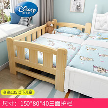 迪士尼儿童床实木加宽床拼接大床边床带护栏男孩床单人婴儿加床定制 150*80*40三面围栏