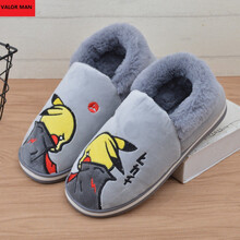VALOR MAN冬季男童棉拖鞋包跟中大童学生居家卡通儿童8-9-15岁男孩毛毛拖鞋 灰色 32-33【偏小一码】