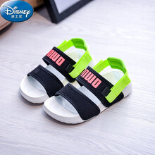 迪士尼儿童运动凉鞋2021夏季新款女童ins凉拖鞋轻便软底男童沙滩鞋外穿 黑绿 29