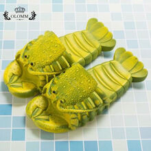亲子拖鞋 一家三口夏季可爱网红创意小龙虾女拖鞋夏一家三口亲子儿童卡通沙滩度假凉拖鞋 绿色 36-37