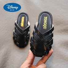 迪士尼(Disney)女童凉拖鞋夏季新款儿童网红编织防滑软底包头公主沙滩半拖鞋女孩凉鞋夏天宝宝 黑色 26码内长16.5cm