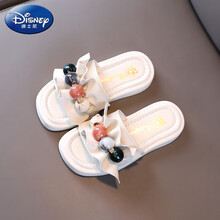 迪士尼(Disney)女童凉拖鞋夏季新款儿童洋气软底公主鞋韩版女孩防滑一字拖沙滩鞋 白色 28码/内长18cm