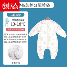 南极人0-1岁宝宝睡觉用的睡袋新生儿防惊跳睡袋婴儿投降式襁褓夏季薄款宝宝防踢被抱被初生四季 马路天使 纱布加棉分腿款 80码75CM(1-2.5岁,适合身高7...
