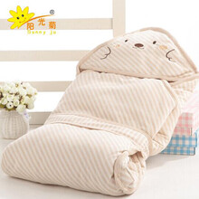 阳光菊(Sunny ju) 彩棉抱被 婴儿绣花卡通抱被加厚 棕色条纹 棕色条纹
