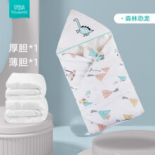 优萌 新生婴儿抱被夏季薄款产房包被纯棉春秋宝宝加厚襁褓包巾抱毯外出 (棉花胆)森林恐龙 被套+薄胆+厚胆 1.9斤 90x90cm