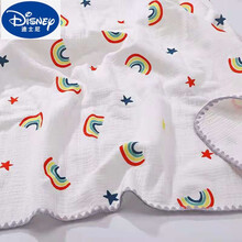 迪士尼(Disney) 新款婴幼儿童空调盖毯抱被新生儿皱绵柔软包巾春夏季纯棉纱布宝宝浴巾 韩式花边-彩虹 110x110cm