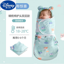 迪士尼(Disney) 新款婴儿抱被新生儿防惊跳襁褓睡袋夏季薄款初生包巾春秋纯棉宝宝包被 萌绿精灵-护头(双层) 75*75CM 适合0-6 0x0cm