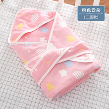 初生婴儿纱布包被 新生儿纯棉包巾宝宝抱被襁褓四季通用夏季薄款 粉色云朵(三层纱款) 80x80cm