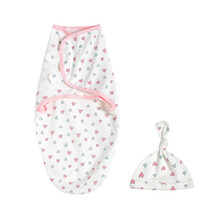 茵秀丽(Insular)婴儿全棉夏包被薄款襁褓巾防惊跳四季通用睡袋宝宝婴儿睡袋 爱心+胎帽 70*58(3-4个月)