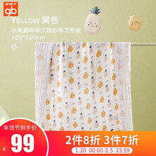 好孩子(gd)婴儿浴巾宝宝纯棉全棉吸水二层纱布大包巾婴幼儿新生儿洗澡巾抱被儿童盖毯加大夏季 6层纱 水果嘉年华 黄色 120*120cm
