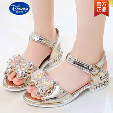 迪士尼自l营(Disney)儿童鞋女童公主蝴蝶结水钻儿童凉鞋2021夏季学生软皮小女孩舞蹈鞋同款 [金色] 2204 34 内长20.8cm