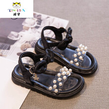 橦华高端品牌童装女童公主鞋夏季新款凉鞋2021儿童鞋小女孩中大童珍珠软底鞋子淑女F12 黑色 30