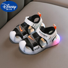迪士尼大牌轻奢上新1-6岁宝宝鞋子夏男童凉鞋2021夏季新款儿童沙滩鞋女童宝宝包头带闪灯鞋中小童鞋潮 黑色 24码/内长15.2CM