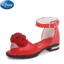 迪士尼儿童凉鞋女童罗马鞋夏季2021新款小高跟学生中大童韩版黑色公主鞋 B21大红 31码内长19.6厘米