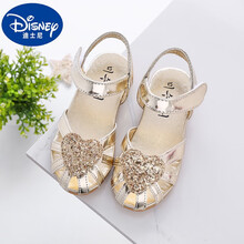 迪士尼1到12周岁半宝宝7沙滩鞋3女童公主4爱心包头凉鞋5小女孩6夏季防滑 金色 爱心凉鞋 29码/内长17.5cm