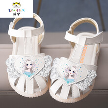 橦华高端品牌童装童鞋女童皮凉鞋夏季真皮儿童鞋子2021年新款软底包头时尚公主凉鞋F12 米白 冬公主 30码