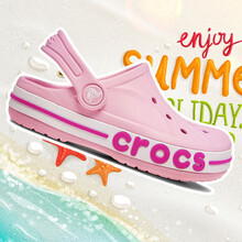 卡骆驰男童女童鞋 2021夏季新款复古条纹儿童休闲沙滩鞋平底凉拖鞋透气干爽洞洞鞋205100 205100-606/花瓣粉 30-31码/C13/190mm