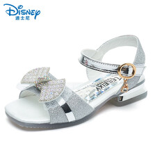 迪士尼女童高跟凉鞋2021新款夏季软底小女孩12学生公主中大童15岁儿童鞋 银色 33码内长20.2CM