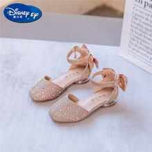Disney/迪士尼旗舰同款 女童公主鞋春夏洋气小高跟单鞋儿童半凉鞋小女孩高跟鞋时尚小皮鞋 粉色 春新品拍下送礼物 32码/鞋内长19.5CM
