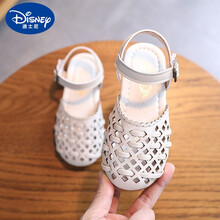 迪士尼旗舰官方店 女童凉鞋小童2021夏季新款包头编织镂空公主鞋防踢软底宝宝学步鞋 米白色 27 内长16.5cm