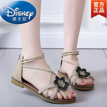 Disney迪士尼2-15岁小孩夏天穿的凉鞋夏季少女孩平底时尚凉鞋初中小学生岁中大童百搭仙女罗马鞋 杏色 36