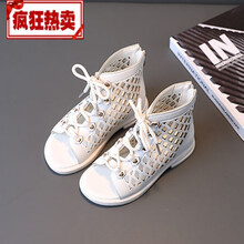 ゐ℘官方专柜优品牌童鞋3-14岁8小孩防滑女孩凉鞋欧美风镂空露趾凉靴女童2021春夏新款儿童交叉绑带 米白色 34码内长21cm
