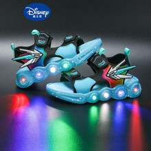 支持鴻星尔克/Disney迪士尼儿童凉鞋2021夏季新款男童沙滩凉鞋中大童带灯小学生男孩凉鞋子同款 蓝色 (带灯) 25 码(内长15.4CM)