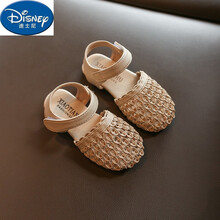DISNEY 迪士尼旗舰官方店2021夏季新款软底小女孩公主凉鞋夏天女童韩版镂空手工编织沙滩鞋 米白色 21
