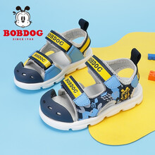 巴布豆童鞋宝宝鞋子夏季2021新款儿童包头软底防滑男小童机能凉鞋 蔚蓝/藏青蓝 22