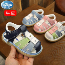 迪士尼(Disney)2021新款夏季小宝宝凉鞋男1-2-3岁防滑软底儿童包头婴儿学步凉鞋 白色带条 内长14.5cm