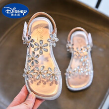 迪士尼(Disney)女童凉鞋2021夏季新款时尚小女孩公主鞋软底沙滩鞋子中大童水晶鞋小孩穿的 (香槟色) 28码内长18cm