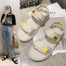 迪士尼同款儿童凉鞋小学生软底公主女孩夏季2021新款洋气运动鞋女童沙滩鞋子 米色 38码内长24cm