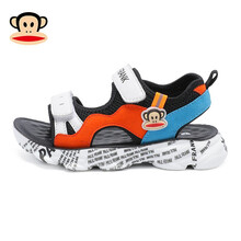 大嘴猴童鞋男童凉鞋新款夏季宝宝中大童男孩小童软底儿童凉鞋女童 黑/米 35码内长22.7cm