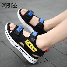 潮引迹男童凉鞋2021新款软底防滑儿童鞋子中大童小学生男孩沙滩鞋 黑宝蓝 37